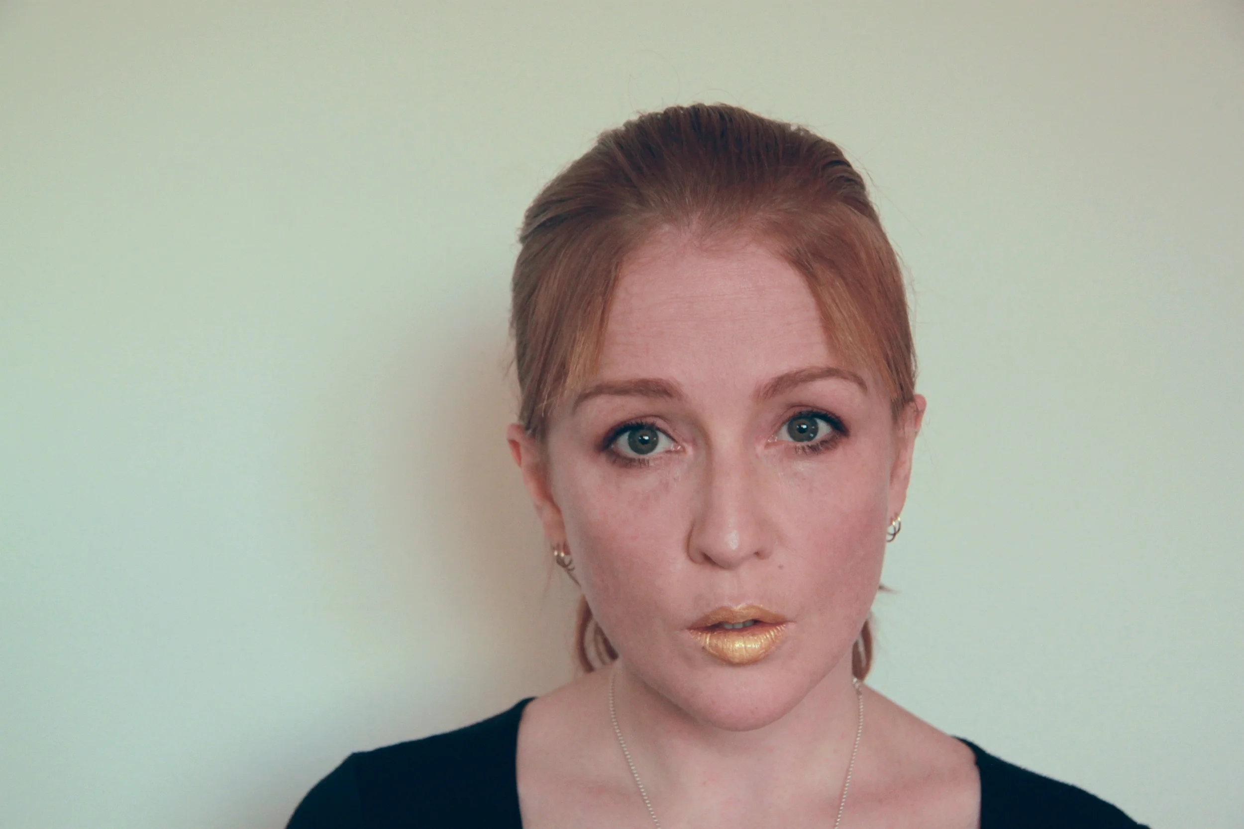 Yellow pop eye shadow with accentuated orange inner. Hair clip with original artwork by Peppi Rae.